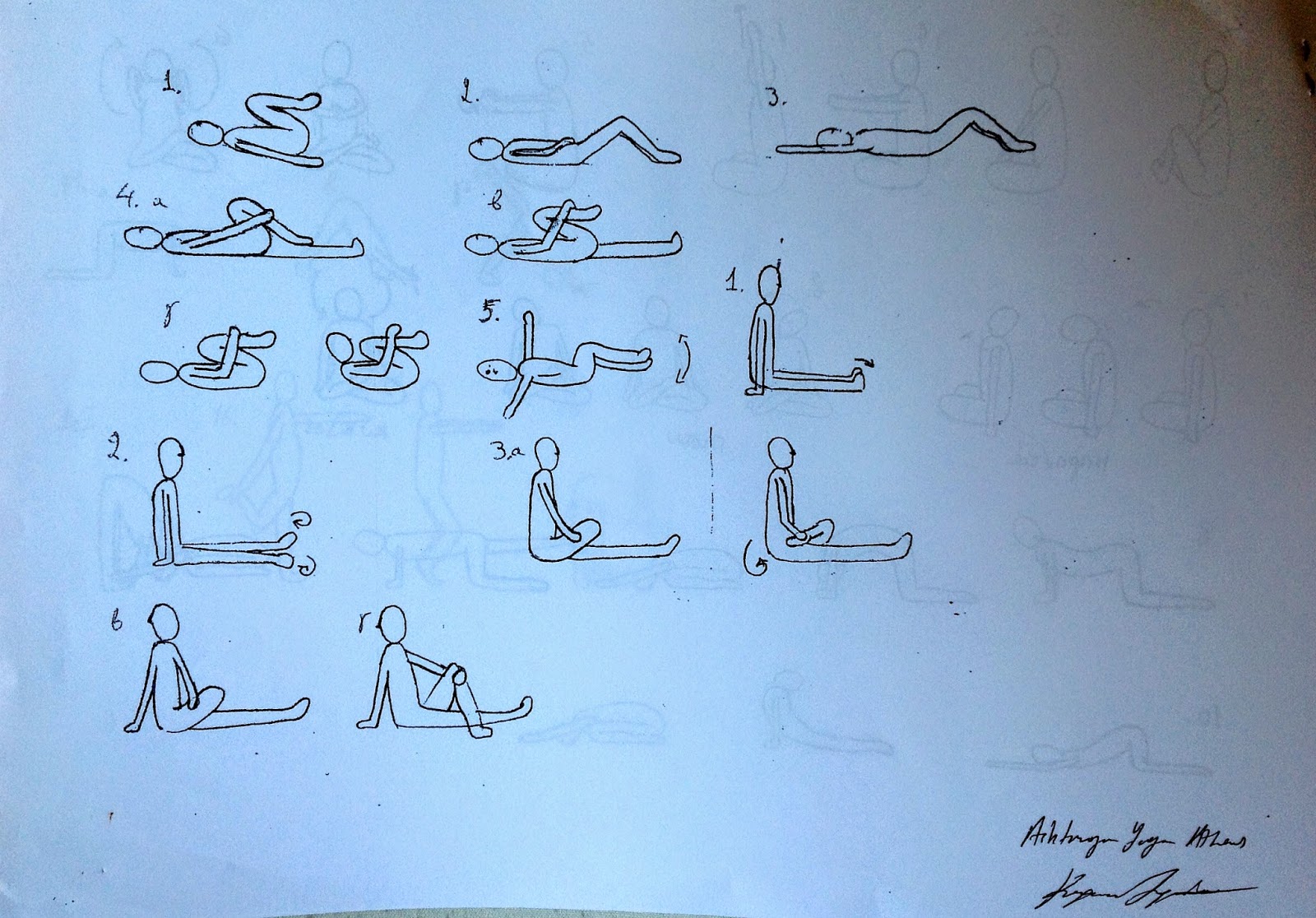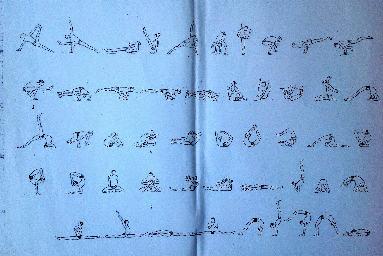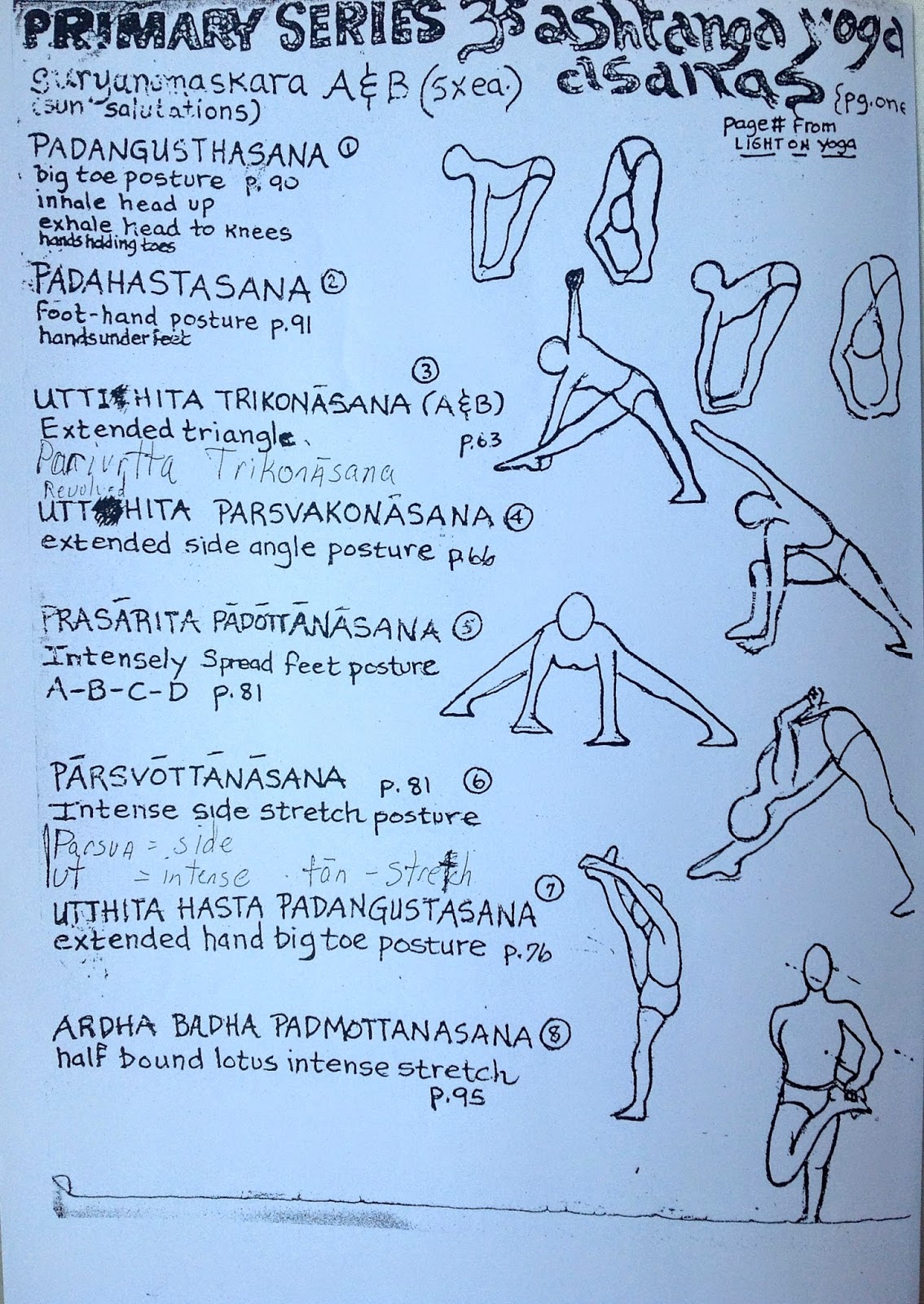 Kristina turned up with an old file of Ashtanga material last night, gave it to me to go through to see if there was anything of interest. Yep, all kinds of treasures buried away. What I loved most though were all these old illustrations, 'cheat sheets', of the Ashtanga series, I love them and couldn't wait to share.