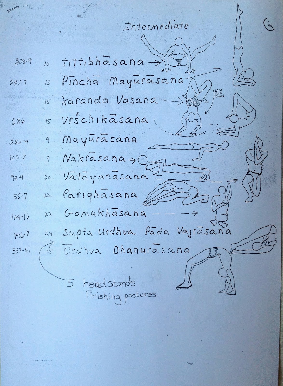 This is interesting, I noticed that in Kristina's shala there is no lift included after utkatasana and virabhadrasana. That's curious because it's there in Yoga Mala so as 'old School' as you get. But look below there are the two lifts but crossed out and they don't appear on the John Scott Tripetra sheets above. Strange when you think of Derek's love of handstands/arm balances.