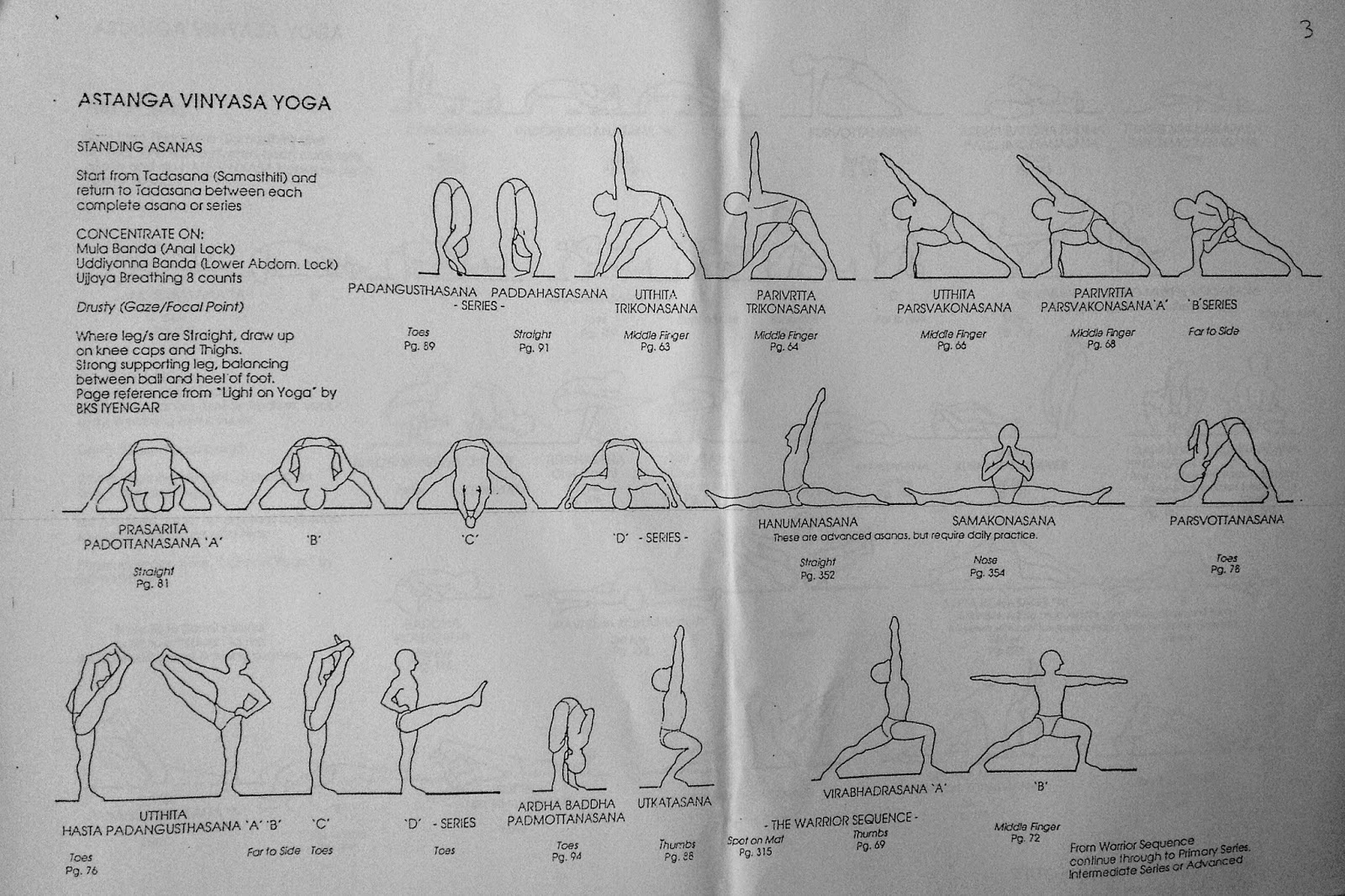 And these are the current 'cheat sheets' At Kristina's Rethymno Shala, it's Apollo practising the Ashtanga series. I believe these may be available to buy if you contact the shala http://www.yogapractice.gr